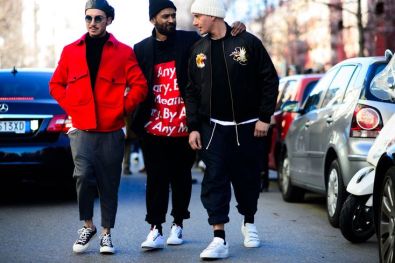 Let’s face it – Milan is not the prettiest city in Italy. But boy, is there no denying that it’s a capital for menswear, both on and beyond the runway. The men outside echoed the dazzling variety seen throughout the Milan menswear shows, showing off color-blocked geometric patterns, sporty ensembles upgraded with long formal coats, and even the pyjama suits seen so frequently on the Italian runway.
